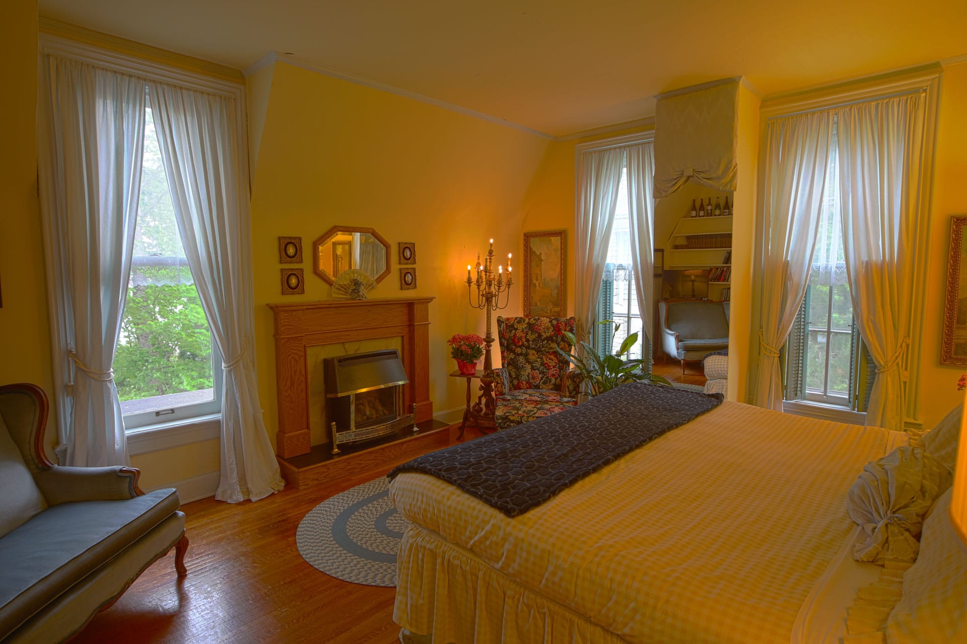 If you’re looking for a romantic getaway with your significant other, look no further than the Master Suite at this Carpenter Gothic Inn. This spacious suite occupies the entire north wing of the historic building, which dates back to the 18th century. You’ll feel like royalty as you enjoy the stunning views of the lake from both the bedroom and the dressing room, which features a large mirror. The suite is also very private and quiet, so you can relax and unwind without any distractions. The only thing you won’t find here is a furry friend – sorry, but no dogs or children are allowed in this accommodation. But don’t worry, you’ll have plenty of company with the friendly ghosts that haunt the inn. Just kidding! Or am I? Book your stay today and find out for yourself!
